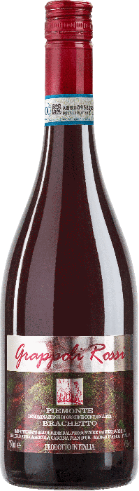 'Grappoli Rossi' op het etiket betekent 'Rode trossen'. De brachetto (de uitspraak is brakettò, met een 'zachte' k) druif zou verwant te zijn aan de braquet druif uit Bellet, een kleine Appellatie in de Provence. Een mutatie van de muscaat druif wordt ook mogelijk geacht.